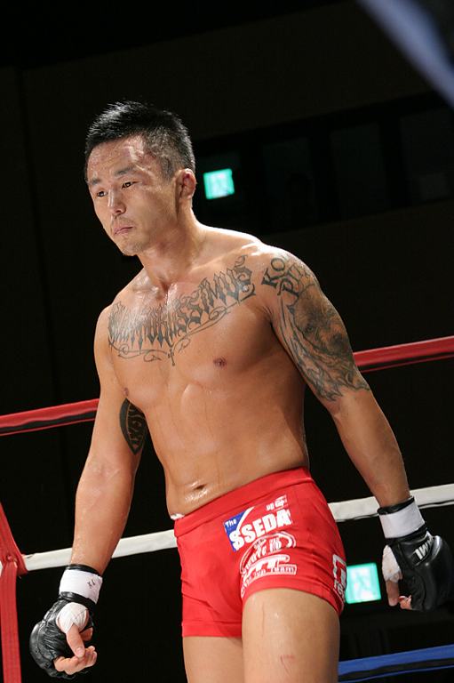 勝ったイム・ジュンスは、韓国プロレスの大スター(?)イ・ワンピョの下でプロレスラーとして活躍していたという韓国では珍しい経歴の持ち主。柔道の経験もあり、打撃も筋がいいため、韓国では早くからヘビー級の有望株として期待されていたが、『HERO’S KOREA』やMARS、DEEPといった国際戦の舞台では実力を発揮できず、最近は5連敗中だった。